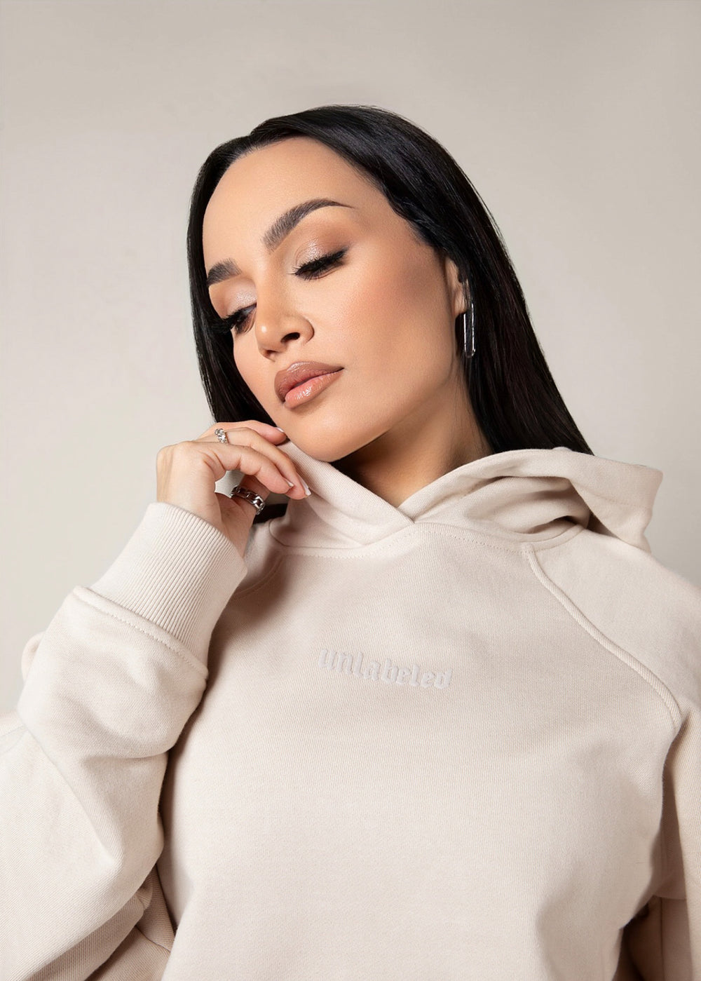 Perfect shade and so comfy! I love a good hoodie that gives you room all around.