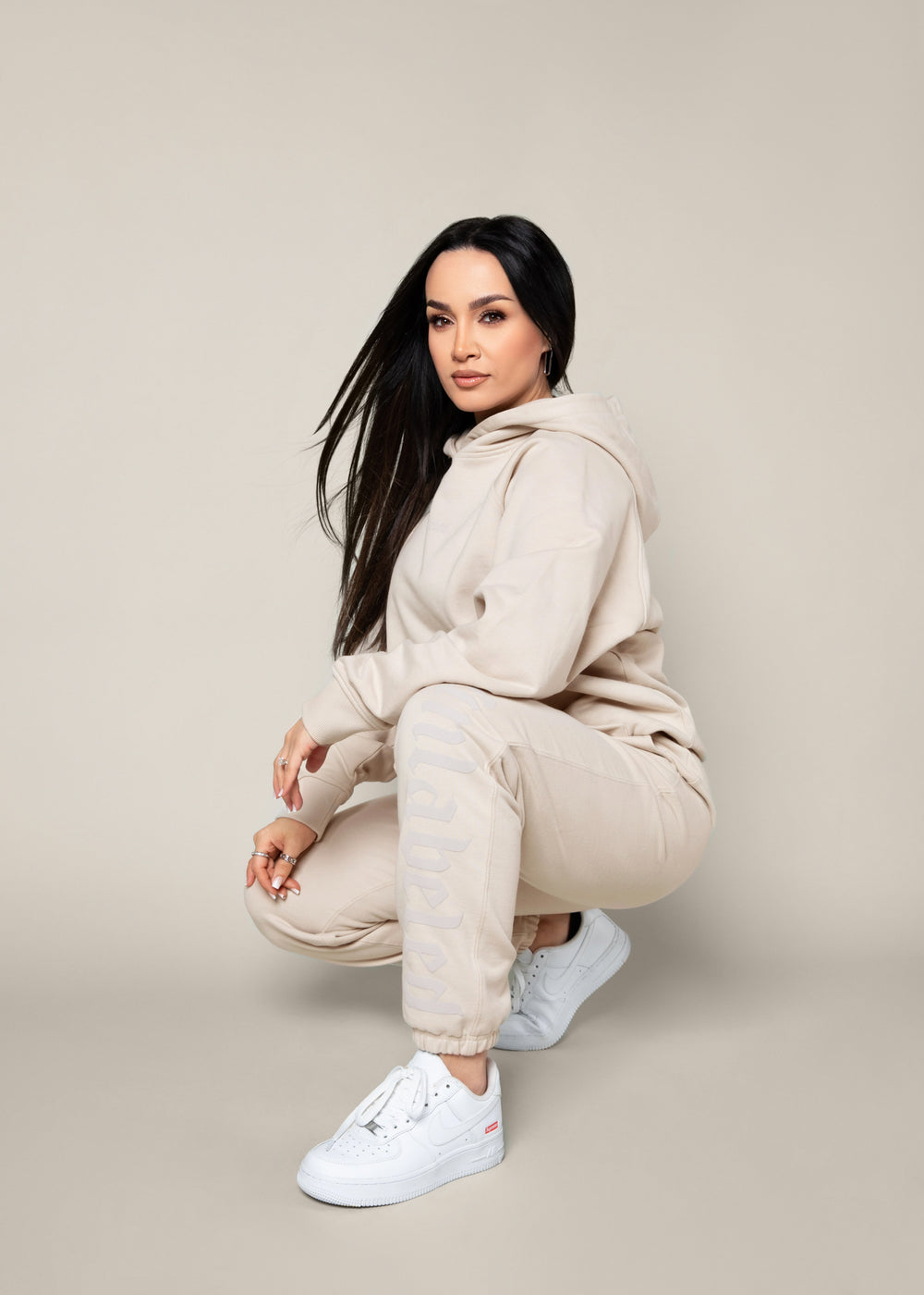 This is the second color I have of the old English hoodie and sweatpant sets - went on a trip to London my husband went through my clothes so he could wear my black set - bought this set, who do you think is wearing my outfit today? Not me, for sure my husband. But heavy weight and has the perfect hood! Not tight on my neck and my hair can be worn down and not look stupid lol